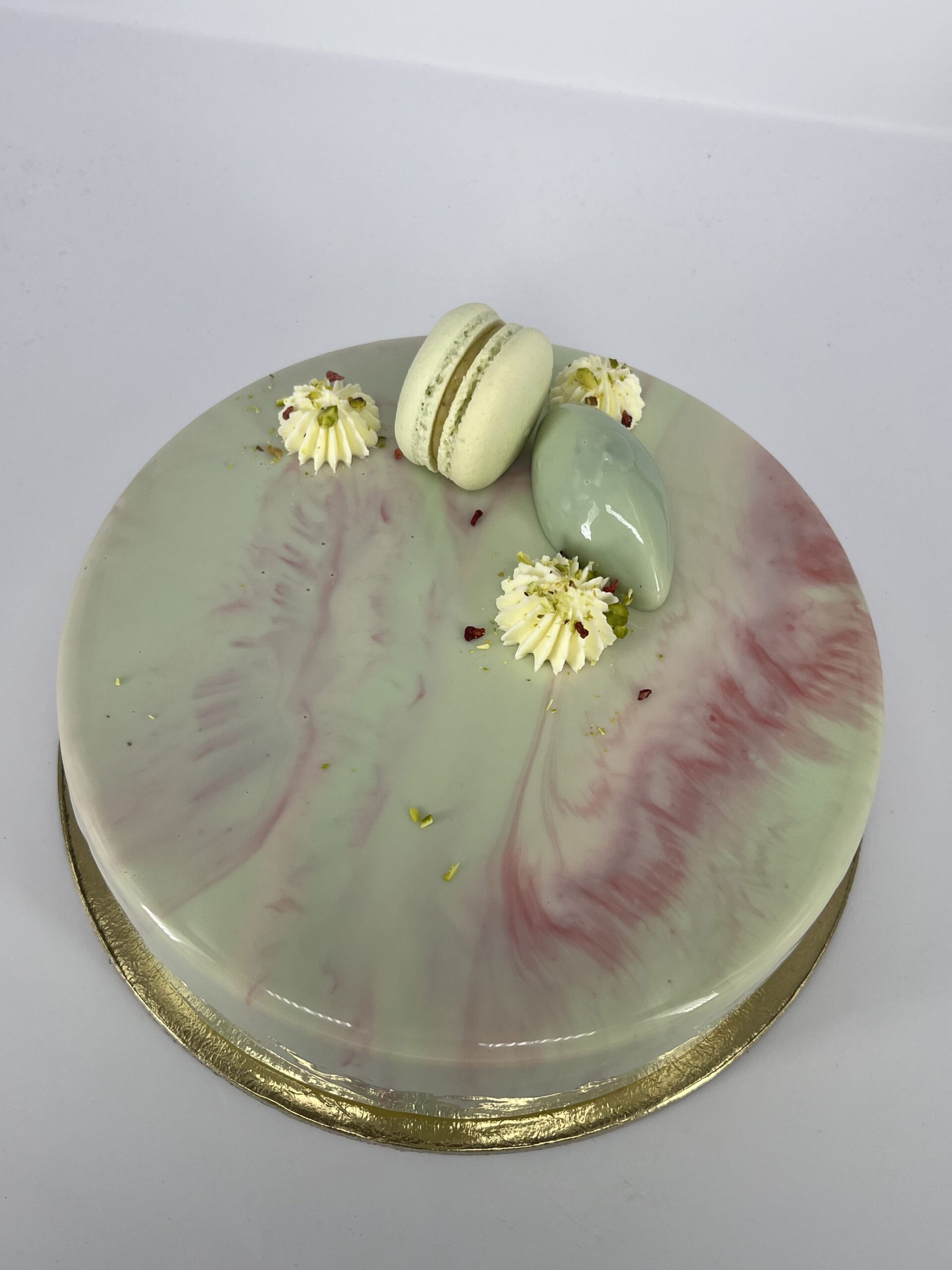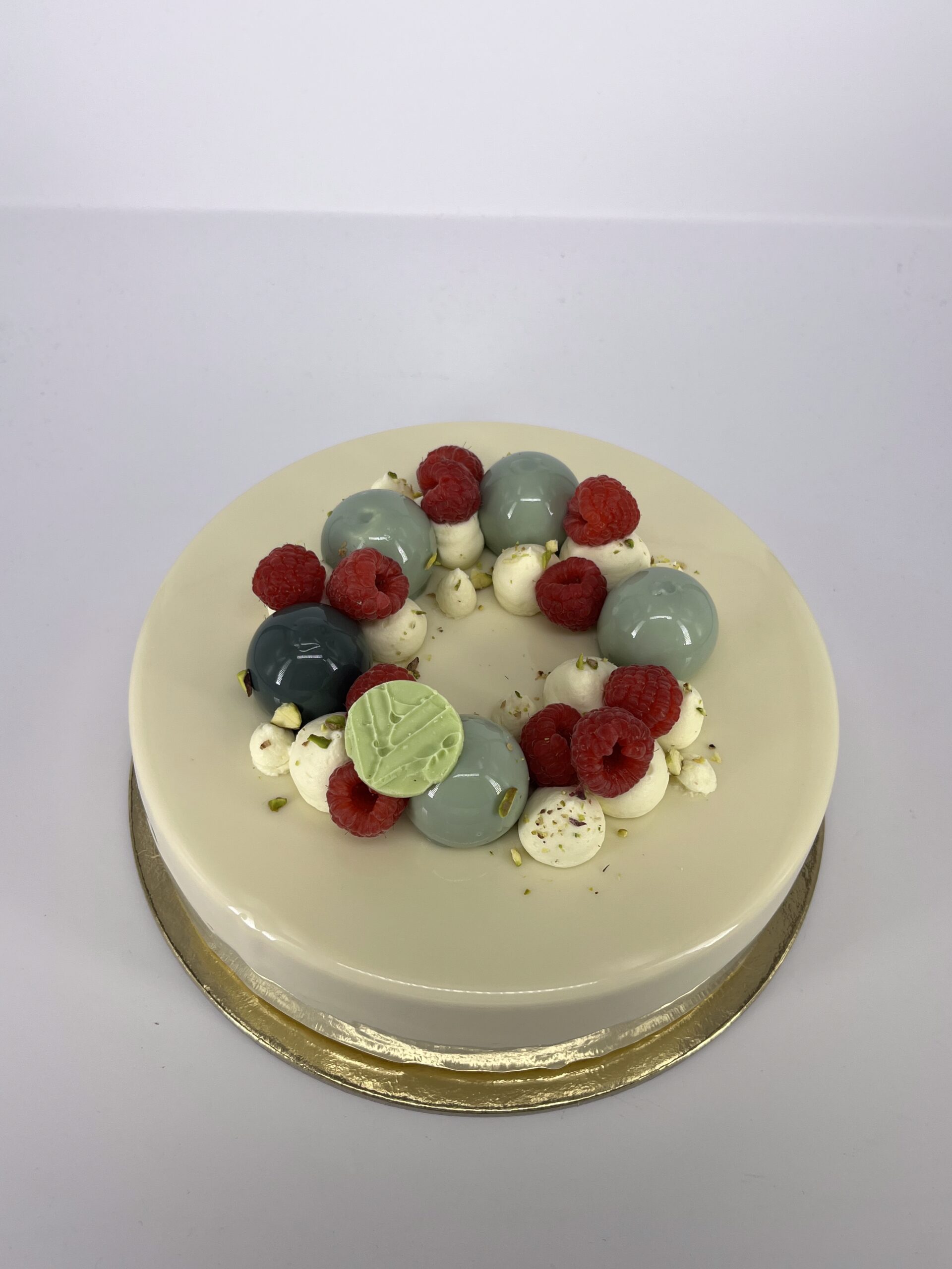 A legnépszerűbb párosítás sem hiányozhat a kínálatból. Pisztáciás vajas piskóta, könnyed málna mousse, málna velő és egy igazán pisztáciás pisztácia mousse.