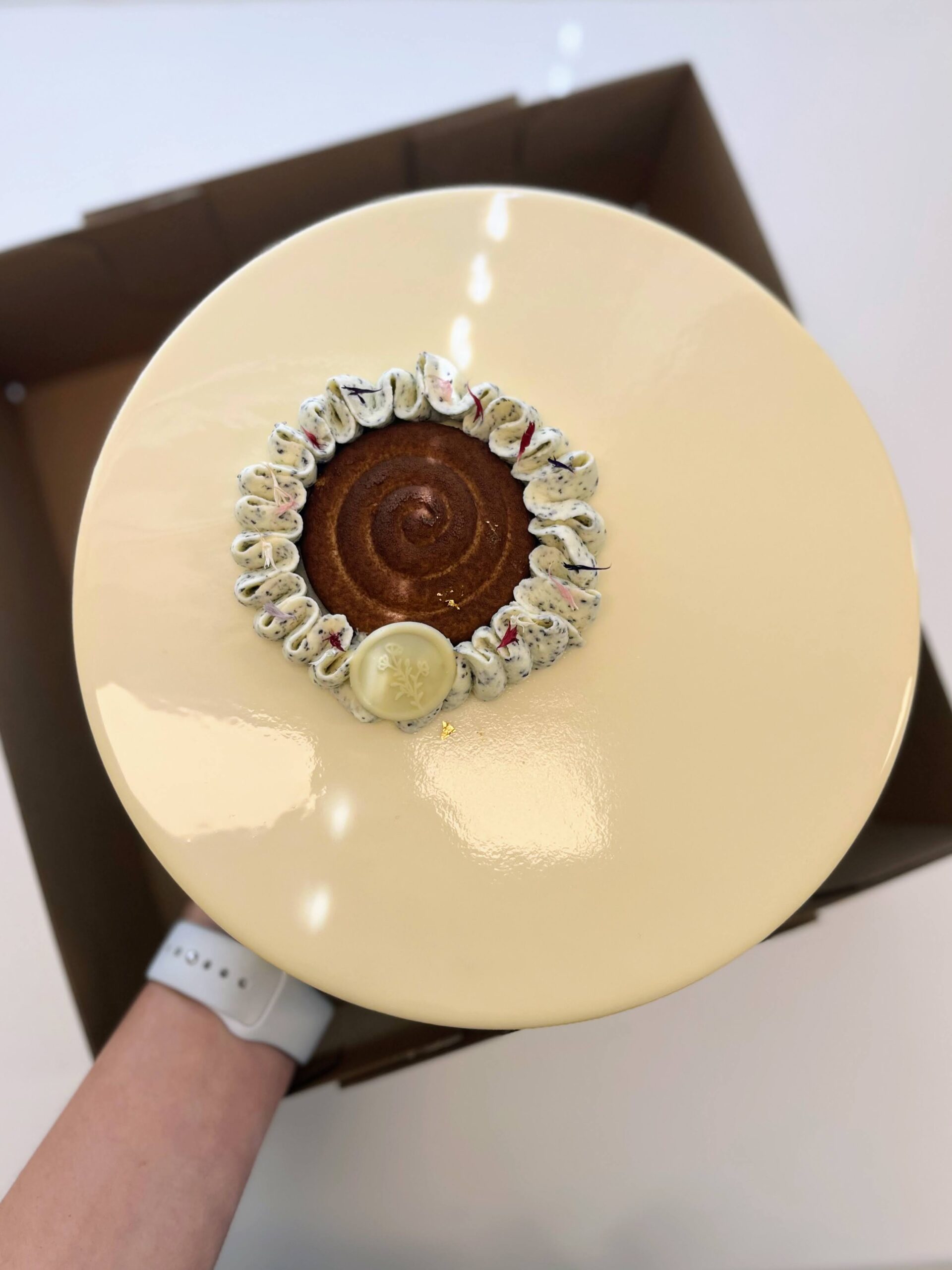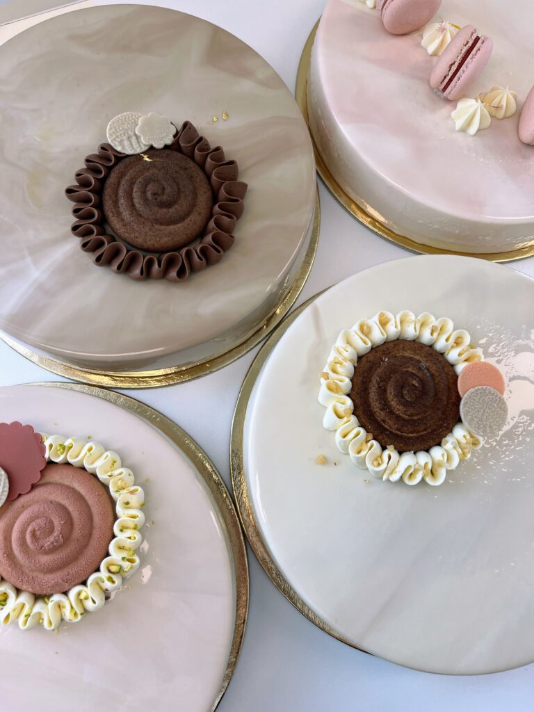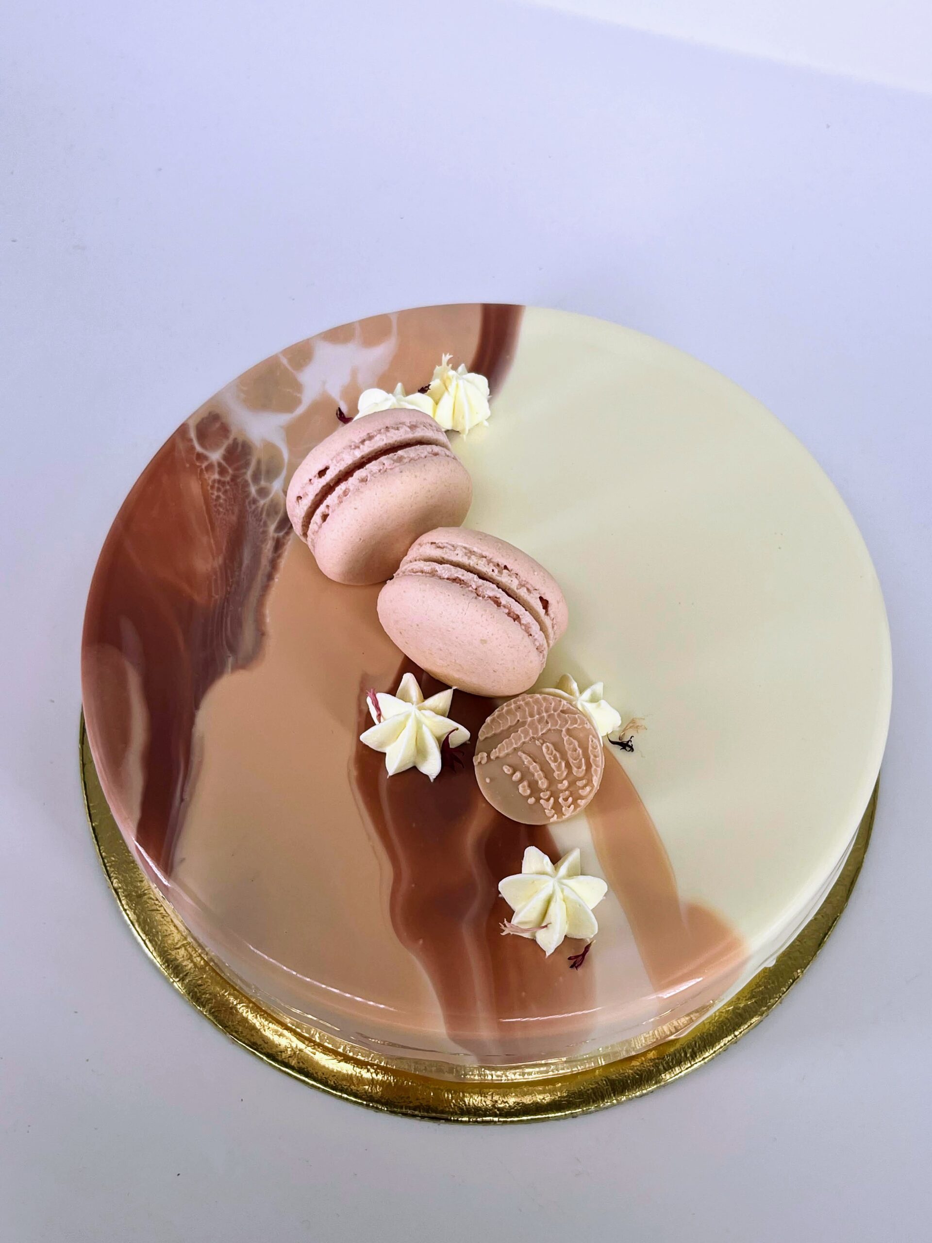 Minden tortám 5 cm magas és fényes tükörglazúrral van bevonva.